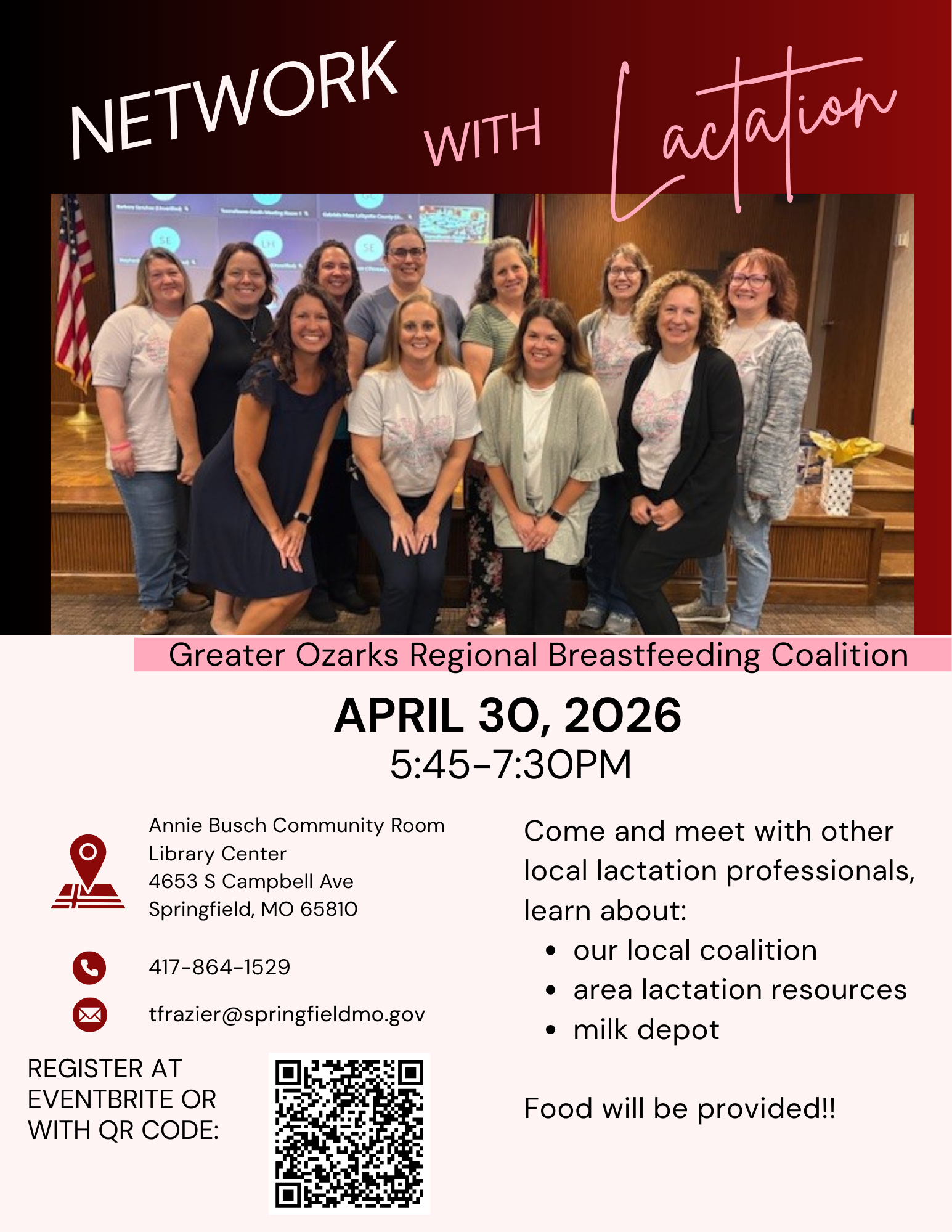 The Greater Ozarks Regional Breastfeeding Coalition was formed in early 2013 as a community-wide collaboration involving area physicians, nurses, and lactation experts working together to promote and support breastfeeding through education, outreach, and advocacy.
